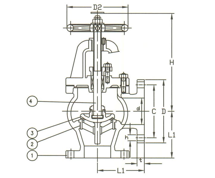 | Size | L1 | D | C | NO. OF HOLES | h |