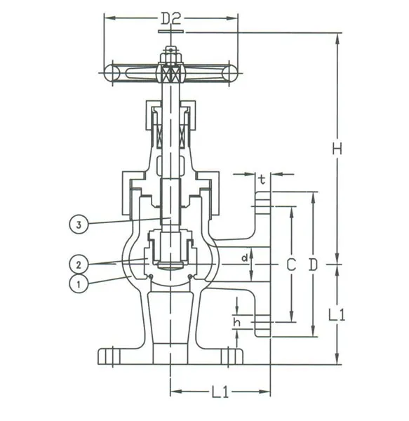 | Size | L1 | D | C | NO. OF HOLES | h |